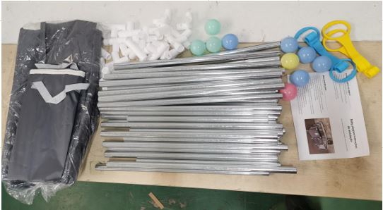 CERCADINHO INFANTIL DOBRÁVEL COM ESTRUTURA EM AÇO TUBULAR REVESTIDO EM TECIDO SINTÉTICO DE POLIÉSTER E PAINÉIS LATERAIS EM TELA RESPIRAVEL
