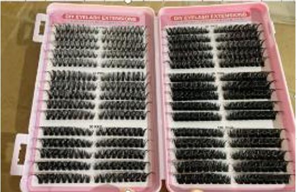 CILIOS POSTICOS ARTIFICIAIS PARA EXTENSAO DE CILIOS, ACONDICIONADOS EM ESTOJO PLASTICO, CONFECCIONADOS EM FIBRAS SINTETICAS, SEM FUNCAO ELETRICA, DE USO MANUAL