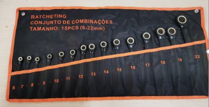JOGO DE CHAVE CATRACA COMBINADA FEITAS EM ACO CROMO VANADIO DE TAMANHOS VARIADOS QUE VAO DE 6 ATE 22MM