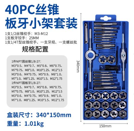 JOGO DE FERRAMENTAS PARA ROSQUEAMENTO INTERNO E EXTERNO, COMPOSTO POR MACHOS E COSSINETES EM ACO CARBONO, ACONDICIONADOS EM MALETA PLASTICA PARA ORGANIZACAO E TRANSPORTE. CONJUNTO MULTIPECA DESTINADO A EXECUCAO, REPARO E AJUSTE DE ROSCAS METRICAS E PADRAO NPT EM COMPONENTES MECANICOS. ACOMPANHA ACESSORIOS MANUAIS COMO VIRA MACHO, PORTA COSSINETE, CALIBRADOR DE ROSCA E FERRAMENTAS AUXILIARES. UTILIZADO EM ATIVIDADES DE MANUTENCAO, MECANICA, INDUSTRIA LEVE E USO TECNICO GERAL.