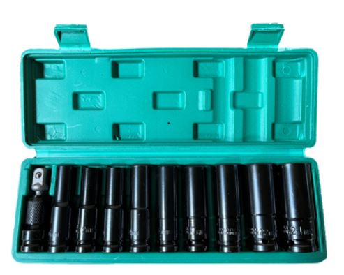 JOGO DE SOQUETES DE IMPACTO MANUAIS EM AÇO CONTENDO 10 PECAS ACONDICIONADO EM MALETA DE PLÁSTICO