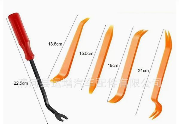 KIT DE FERRAMENTAS PARA DESMONTAGEM AUTOMOTIVA, CONFECCIONADO EM MATERIAL PLASTICO E METAL, ACONDICIONADO EM ESTOJO, COMPOSTO POR ESPATULAS E ALAVANCAS PLASTICAS DE DIFERENTES FORMATOS, ALICATE, CHAVES, EXTRATORES E ACESSORIOS PARA REMOCAO DE PRESILHAS, ACABAMENTOS E PAINEIS INTERNOS DE VEICULOS.