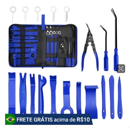 KIT DE FERRAMENTAS PARA DESMONTAGEM DE ACABAMENTOS AUTOMOTIVOS CONTENDO 19 PECAS, COMPOSTO POR ESPATULAS, ALAVANCAS, EXTRATORES E ACESSORIOS DIVERSOS, FABRICADOS EM MATERIAL PLASTICO E METAL, ACONDICIONADOS EM ESTOJO ORGANIZADOR, UTILIZADO PARA REMOCAO DE PAINEIS, PRESILHAS, MOLDURAS E COMPONENTES INTERNOS DE VEICULOS SEM DANIFICAR AS SUPERFICIES.