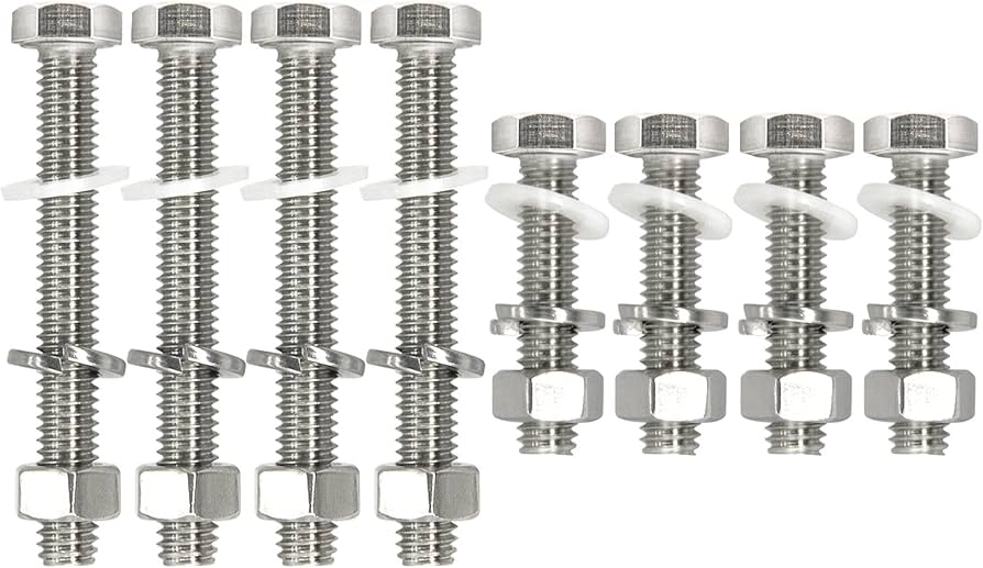 / KIT DE PARAFUSOS DE SUSPENSÃO EM AÇO INOXIDAVEL, COMPOSTO POR BASE, PARAFUSO ROSCADO E TAMPA DECORATIVA