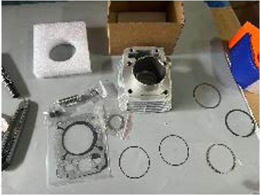 KIT PISTAO E CILINDRO PARA MOTOCICLETA EM METAL. ACOMPANHA PISTAO E JUNTAS