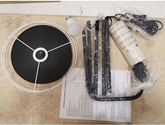 LUMINARIA DE CHAO PARA USO INTERNO, BASE CIRCULAR METÁLICA NA COR PRETO