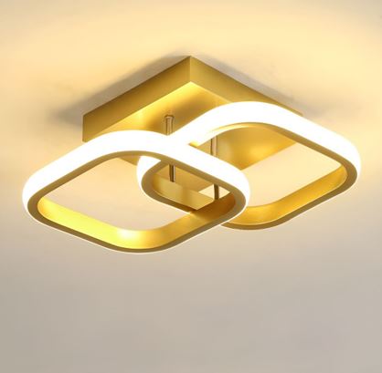 LUMINARIA DE TETO TIPO PLAFON COM TECNOLOGIA DE LED INTEGRADA, 3 TEMPERATURAS (QUENTE, FRIO E NEUTRO), COM DESIGN MODERNO EM FORMATO GEOMETRICO, ESTRUTURA EM METAL DOURADO E ACRILICO, PARA INSTALACAO SOBREPOSTA