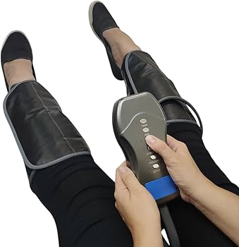 MASSAGEADOR DE PERNAS SEM FIO COM SISTEMA DE COMPRESSAO DE AR, ALIMENTADO POR BATERIA RECARREGAVEL. POSSUI 4 CAMARAS DE AR INFLAVEIS PARA PE, PANTURRILHA INFERIOR, PANTURRILHA SUPERIOR E COXA, COM MULTIPLOS MODOS E INTENSIDADES AJUSTAVEIS. USO PARA ALIVIO MUSCULAR E MELHORA DA CIRCULACAO SANGUINEA.