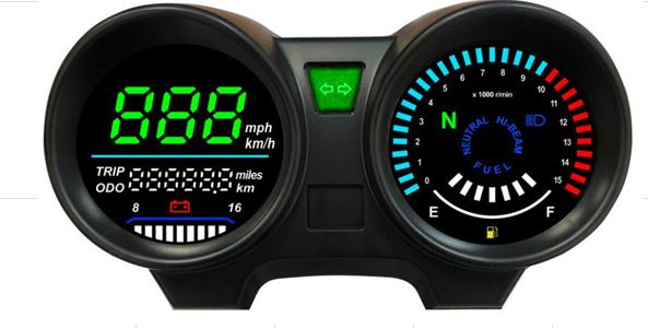/ PAINEL DIGITAL DE MOTOCICLETA COM FUNCAO PARA MEDIR, VELOCIMETRO, QUILOMETRAGEM, TACOMETRO, UNIDADES METRICAS,VOLTAGEM DE BATERIA, FAROL ALTO, ENGRENAGEM NEUTRA, MEDIDOR DE COMBUSTIVEL