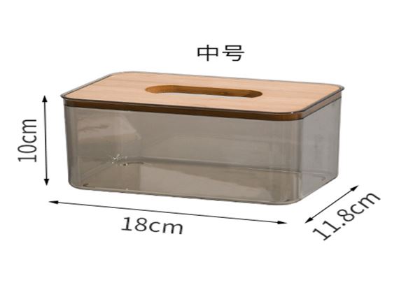 PORTA TOALHA DE PAPEL EM PLASTICO TRANSPARENTE E TAMPA EM BAMBU. DIMENSÕES: 18X11.8X10.8CM quantidade
