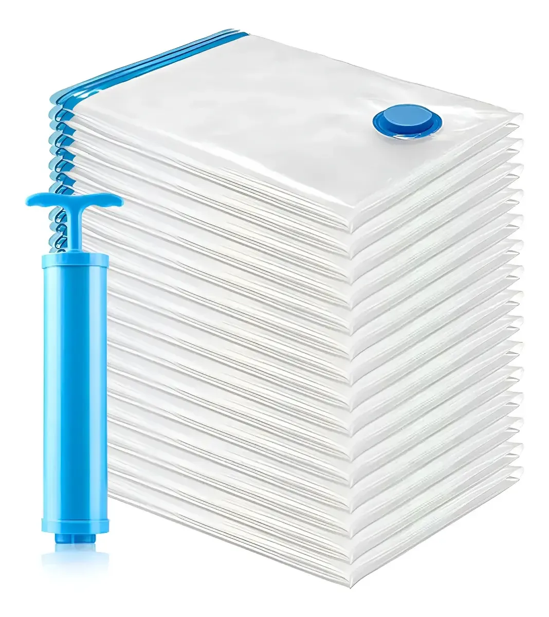 / SACO PARA ARMAZENAMENTO A VACUO, FABRICADO EM PLASTICO, COM VALVULA PARA RETIRADA DE AR, ACOMPANHADO DE BOMBA DE SUCCAO, UTILIZADO PARA COMPRESSAO E CONSERVACAO DE ROUPAS OU OUTROS OBJETOS.