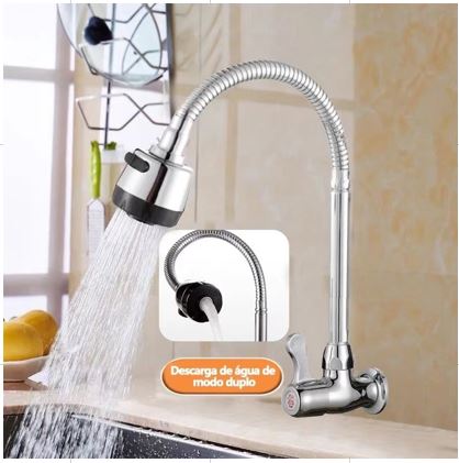 TORNEIRA METÁLICA PARA COZINHA COM BICA MÓVEL FLEXIVEL