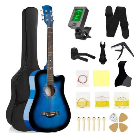 VIOLÃO ACÚSTICO DE MADEIRA, COM ENCORDOAMENTO METÁLICO, COR AZUL